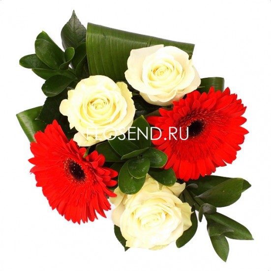 Букет «3 белых роз и 2 красных гербер» в Тамбове