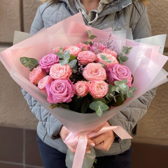 Букет «Пионовидных роз с эвкалиптом» в Тамбове