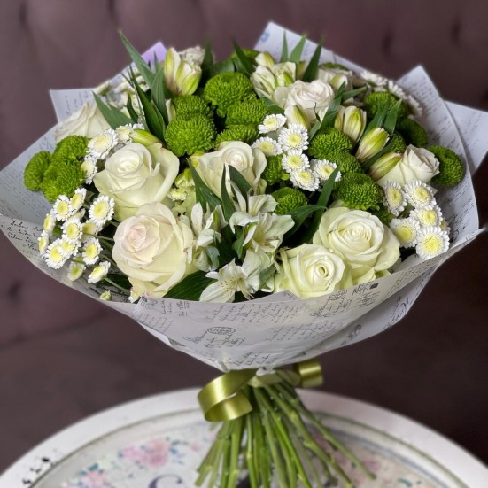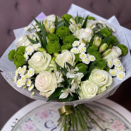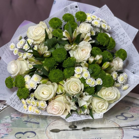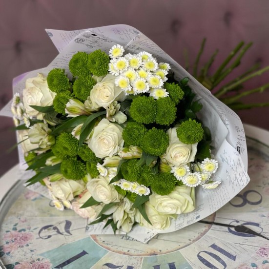 Букет «Розы и зеленые хризантемы» в Тамбове