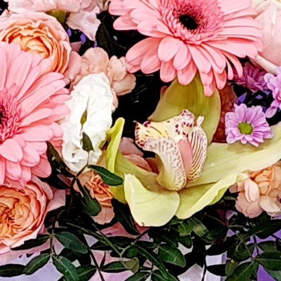 Гербера и орхидея в коробке в Тамбове